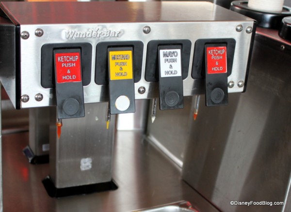 Once you get your food all ordered and picked up, it’s time to head over to the Condiment Bar! Yep, this is another one of those great Disney counter service locations that offers a wealth of goodies to top off your eats.