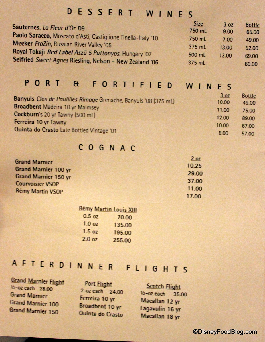 Here is the Drink Menu on the Yachtsman menu from our visit. Note that most of these are straight out of the standard Disney Bar and Lounge menu.