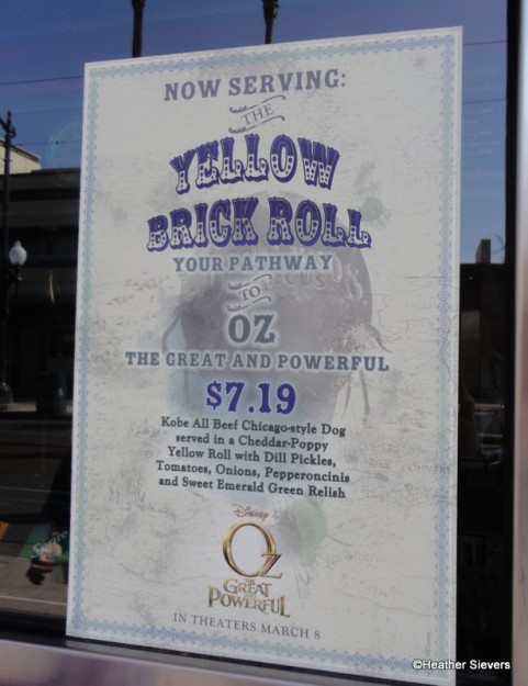 The featured Oz hot dog was the “Yellow Brick Roll, Your Pathway to Oz the Great and Powerful.” Or, depending on your stomach strength, it may be your pathway to heartburn! ; )