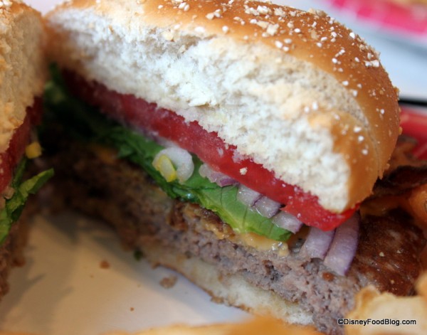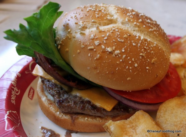 The Angus Bacon Cheeseburger was substantial and fresh on the plate, and those chips looked amazing.