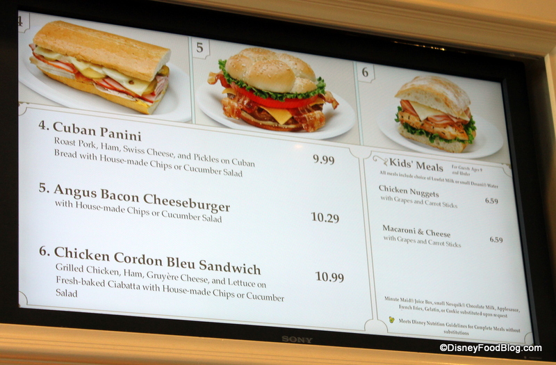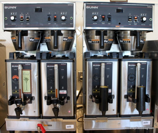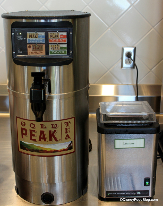 Weβll see the standard beverage offering in a minute, but like other Disney World counter service locations, youβll find a selection of specialty beverages here. These are available for an additional charge, and are not part of the refillable mug offerings.