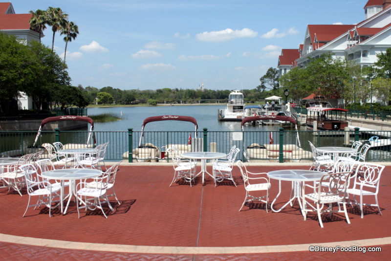 One of the best amenities remains, however β the beautiful outdoor seating, which overlooks the marina and Cinderella Castle at the Magic Kingdom!