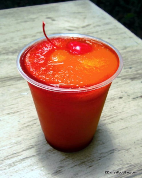 You can see that it’s mostly a mango daiquiri, with a bit of wildberry floated on top for contrast.
