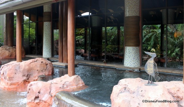 A bank of windows overlooks a beautiful water feature just outside of the restaurant. The rocks and running water provide a soothing backdrop to your dining experience. And if you happen to be seated near the window, be sure to try and spot the hidden Mickey in the rock formations!