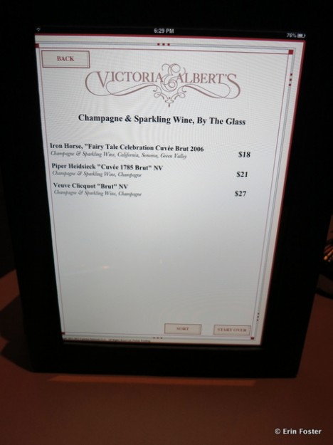 Overall, I cant wait to experience an evening at Victoria and Albert’s and now with their wine list on an iPad, I’m sure it will just add to my expectations of a perfect evening!