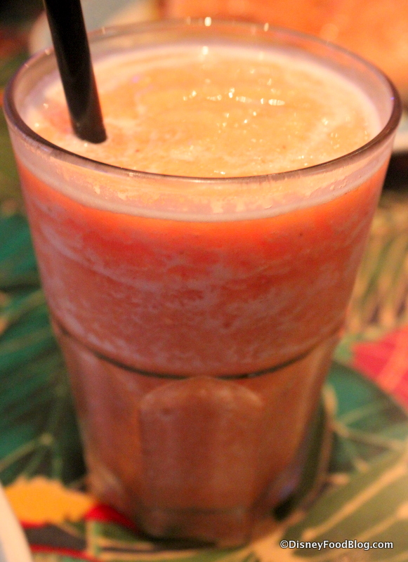 I can’t pass up an interesting frozen drink, so I decided to try a Rainforest Ricky Freeze. A mixture of frozen apple, pineapple, orange, strawberry, and grapefruit juices are blended together with orange sherbet for a very exotic glass of refreshment! What a crazy combo — but it works!