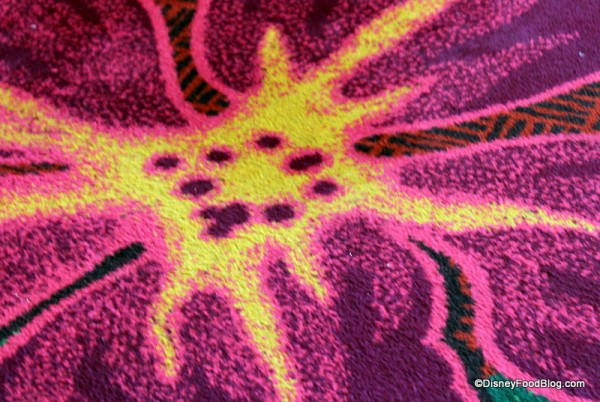 Carpeting includes vibrant colors that remind you of a tropical setting. Be sure to look closely at those flowers — you just might discover a little surprise!