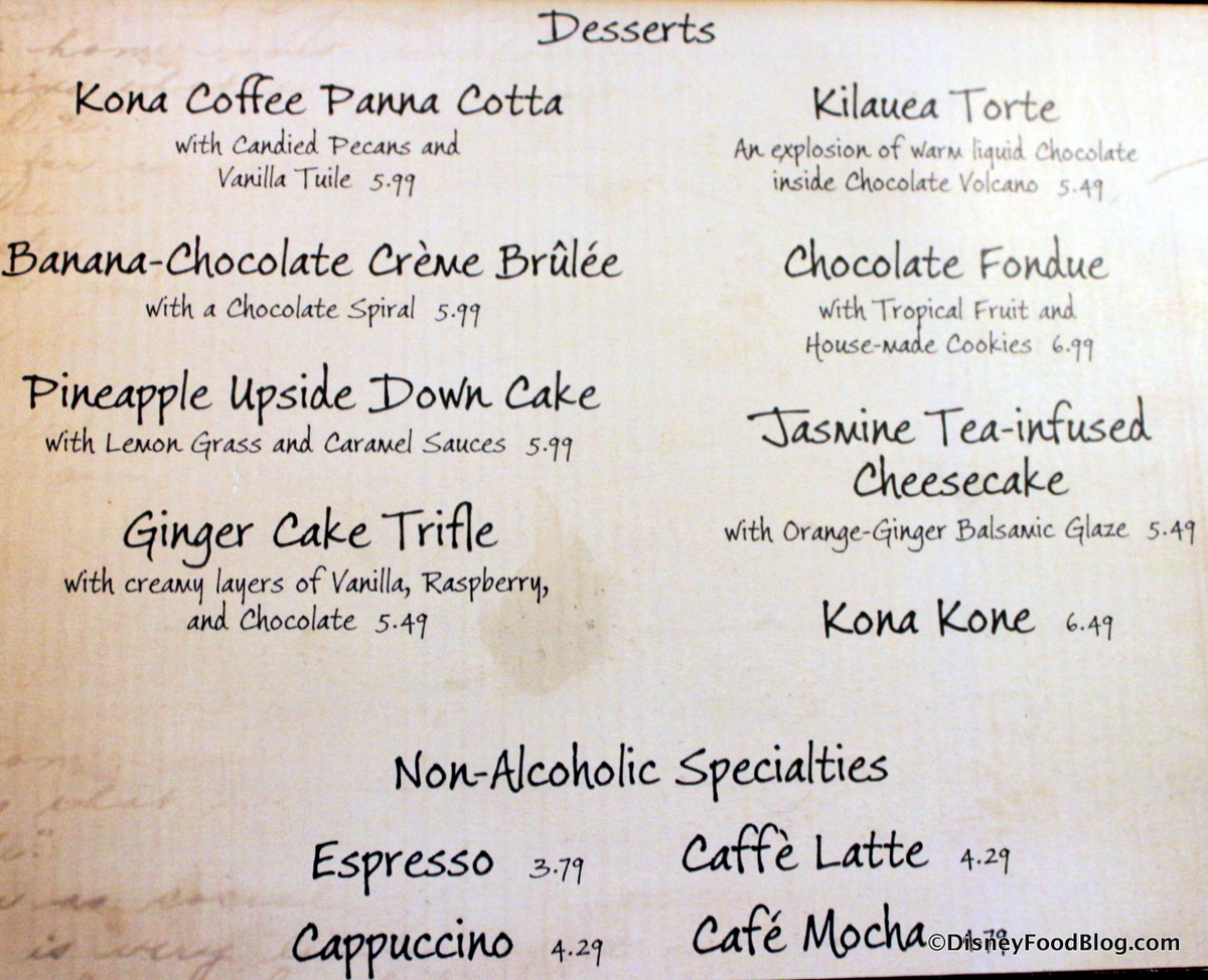 While we both thoroughly enjoyed our entrees, we left a little room for something sweet. Desserts have changed up a bit since our last Kona lunch visit, but favorites are still available like the Kilauea Torte and the Banana-Chocolate Creme Brulee. The Pineapple Upside Down Cake is a staple here, of course.