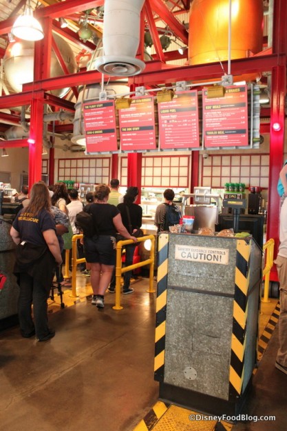 Back inside, the ordering area is the classic Disney counter service setup. Menu boards aren’t computerized, and the spotlights illuminating them can get in the way a bit, but you shouldn’t have much trouble reading them in preparation for ordering.