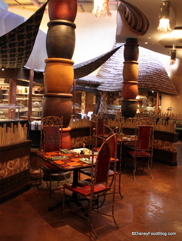 Other tables feature an African fabric design and more delicate chairs. Don’t forget to look closely here for hidden Mickeys!!
