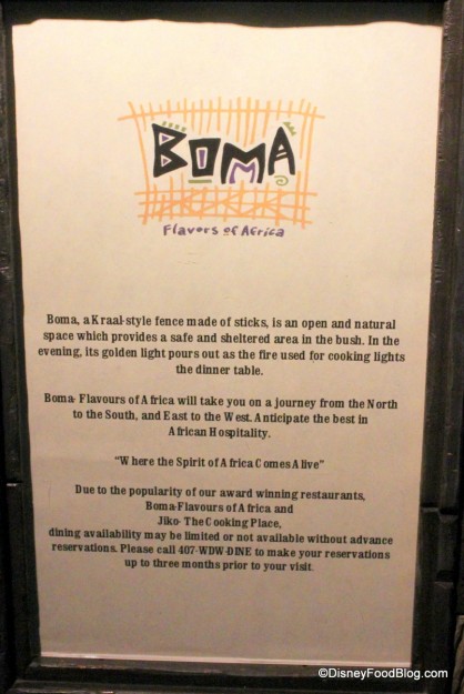 There’s one pretty important distinction that sets Boma apart from other very popular buffets at Disney. Many of the others are primarily character dining experiences. But you won’t find any characters at Boma. That’s an important detail to keep in mind when planning your advance dining reservations.