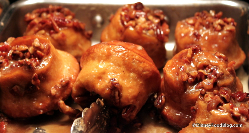 The Sticky Buns look rich, enrobed in a Caramel Sauce and topped with pecans.
