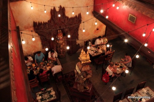 In my opinion the restaurant is easy to miss. Okay, sure – the building is purple, but in the colorful Asia area of Animal Kingdom EVERYTHING is colorful. Once you do find it and step into the unassuming building, you are transported to something that (we thought) felt like it was straight out of an Indiana Jones movie.