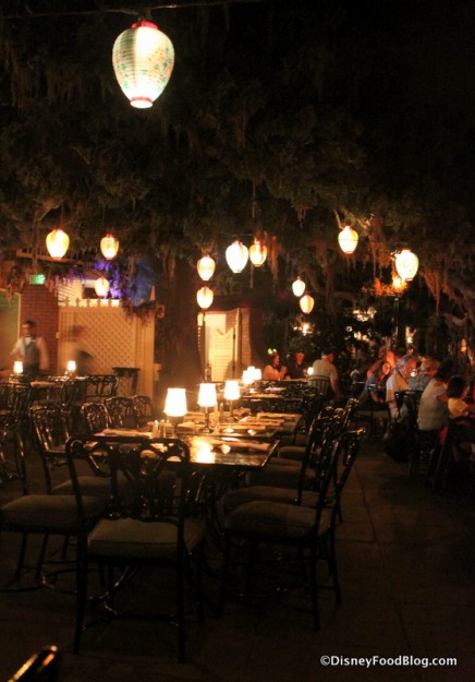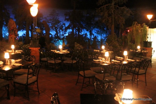 Besides giving you a glimpse of the Pirate boats, these seats also get you closer to the water and the bayou that lends the restaurant its name. Just take in the detail of the ornate lamps and the cypress tree. Incredible!