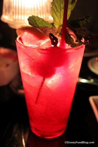 Now, besides being fruity and delicious, with the lemon flavor offsetting the sweet Mango and Raspberry, it was also seriously fun with the addition of a glow cube. These are not as prevalent in Disneyland as they are in Disney World, so it was fun to find this one here.