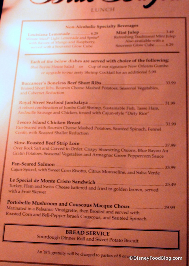 I really want the Blue Bayou to be good or at least get better, but the food really is really nothing special. Especially given the prices. I was hopeful when I heard they were revamping the menu but alas the food quality didn’t seem to improve. I’ve given the Blue Bayou another chance every year or two and am always disappointed.