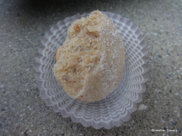 But I was way wrong. Moist, dusted with sugar and topped with a peanut, the cookies reminded me of a peanut butter cookie dough ball. Not squishy like an uncooked ball of dough, but sort of half baked and mixed with chopped peanuts.