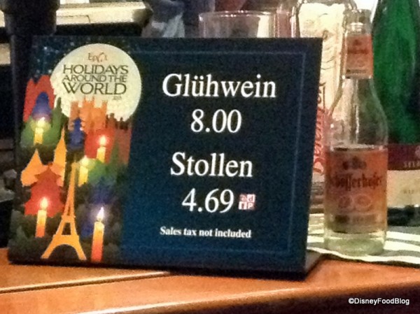 Hot, spiced Gluhwein is available again this year; however, it is sold in Sommerfest. Stollen (holiday fruit cake) can be found here as well.