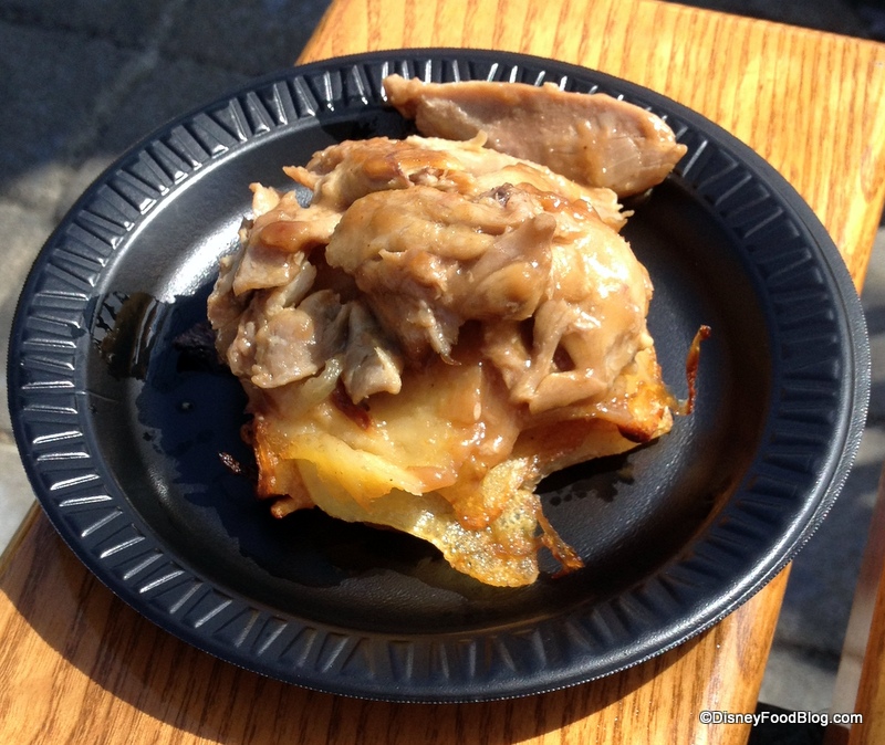 This awesome combo of sweet potato waffle and everyone’s favorite pineapple deliciousness is a must-try for Epcot guests. We were really surprised how much we enjoyed the cinnamon + pineapple combo!