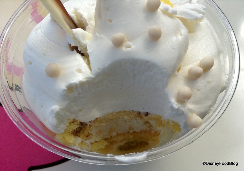 The White Chocolate Rabbit Cake Cup (inspired, obviously by the always-late White Rabbit in “Alice in Wonderland”) is a yellow cake base that is “sprinkled” throughout with small bits of chocolate cake.