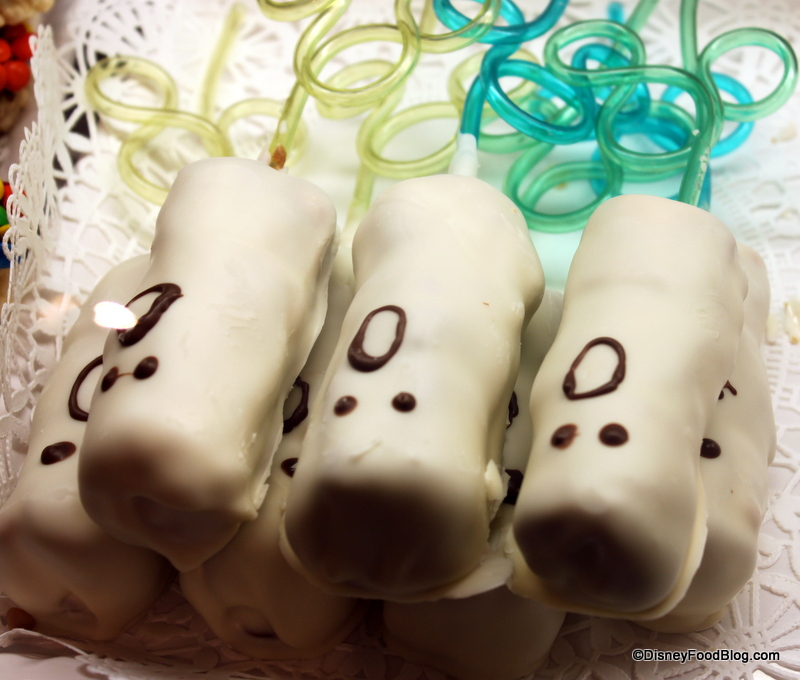 As you’ve already seen here, depending on the time of year, or even just the day of your visit, you may have a choice of a few Marshmallow Wands decorated in various ways. They typically cost $4.99 and are included as a snack credit on the Disney Dining Plan.