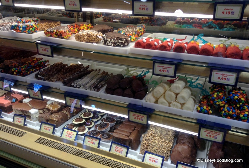 There are several stops around both Disney World and Disneyland with bakery cases that are full-to-overflowing with eye-catching goodies. In Disney World, these spots include Magic Kingdom’s Main Street Confectionery, Prairie Outpost and Supply, and Big Top Treats; Hollywood Studios’ Sweet Spells; and Downtown Disney’s Goofy’s Candy Company and the Candy Cauldron.