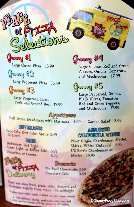 Nearly every Disney resort — from value locations like Pop Century to moderate and deluxe resorts — offer pizza delivery, either as a standalone dining option, or as part of the room service menu.