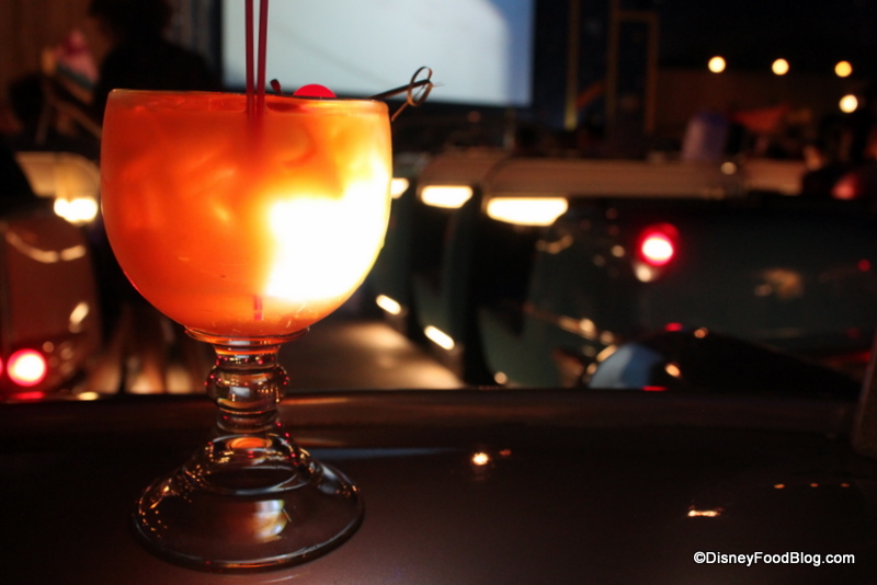 at Disney’s Hollywood Studios has some of the best dinner entertainment around, with their fun “B” movie reel and convertible dining cars! But we also love their delicious drinks. And since the restaurant is so dark — being a drive-in theater and all — it’s fitting that many of them feature glow cubes as light sources!