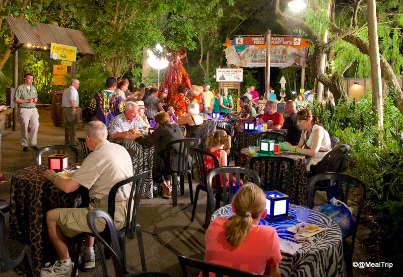 We attended the event last night, and it was fantastic. We had regular seats (not the premium ones), and we had a great view. Yes, there were a lot of movie video clips included, but they kept switching over to the view of what was happening on stage. Maybe this was new and they didn’t do that the first night? When the show was over, it was raining and most of the event was moved indoors. They still had a few food stations open outside, and we opted to sit at one of the many abandoned outside tables to avoid the crowds (I don’t mind getting wet). When we wandered around afterward, we noticed that there were plenty of tables inside, too. They had tables set up in the show theater,and Tusker House and Pizzafari were open so that people could sit in there as well. The character greetings and stilt walkers were moved indoors to the theater and Tusker House. The food was wonderful. As a picky eater, I was surprised that everything I tasted was so tasty. The one exception was the Lion Chow. I had high hopes based on what I read, but mine was stale. I think the containers got wet. Oh, well! I generally enjoy the special ticketed events, and this was no exception. I think it was well worth the $119.