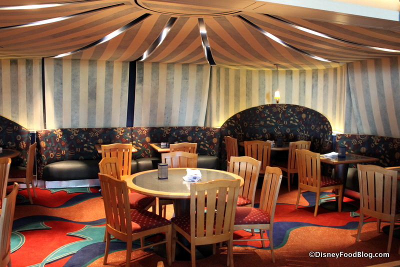 The theme is continued as you move further into the restaurant with a gorgeous backlit ferris wheel, and the most enviable seating space of all right underneath the circus tent.