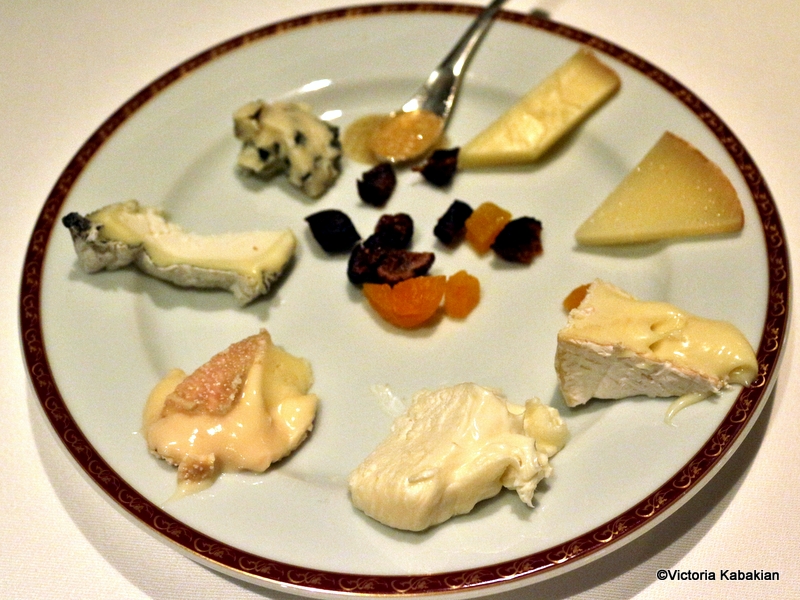 cart. A variety of cheese from hard to triple cream, goat to blue are offered up along with some dried figs, dried apricots, honey comb, and crispy cherry bread. We tried a nice sampling before getting ready for dessert. And that’s when the red napkins come out…