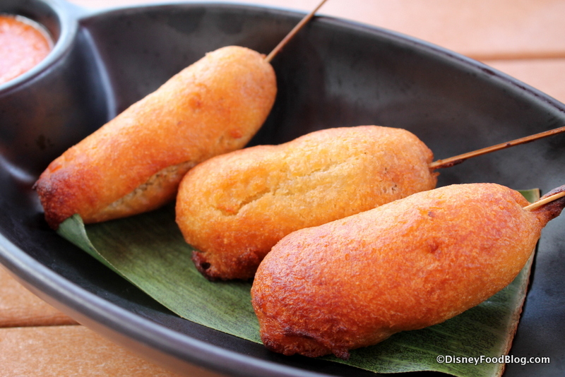 Served with a curry ketchup (with hints of mustard and sriracha), these are exactly what they appear to be: corn dog sausages, complete with sticks!