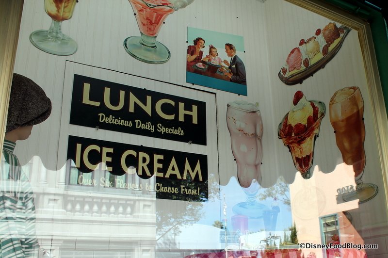 If you peek in the neighboring window, you can see examples of all the sundaes, shakes, and malts that would be available in this fictional setting. (And, when the glare from the sun is a little calmer on the windows, you can also see the table set with plastic burgers and fries.)