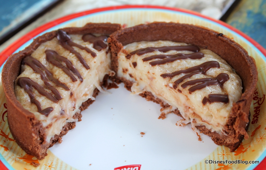 The chocolate shell was surprisingly soft, and you can tell by the photo that it barely crumbled. The custard was cool and creamy (closer to a pudding consistency than a creme brule type) with plenty of coconut flakes throughout. Coconut, chocolate, cinnamon… I mean, if there is only one dessert option available, I’d say this is definitely a good one to have! I’d recommend it as a snack in its own right, and not just as the add-on dessert option with the Disney Dining Plan.
