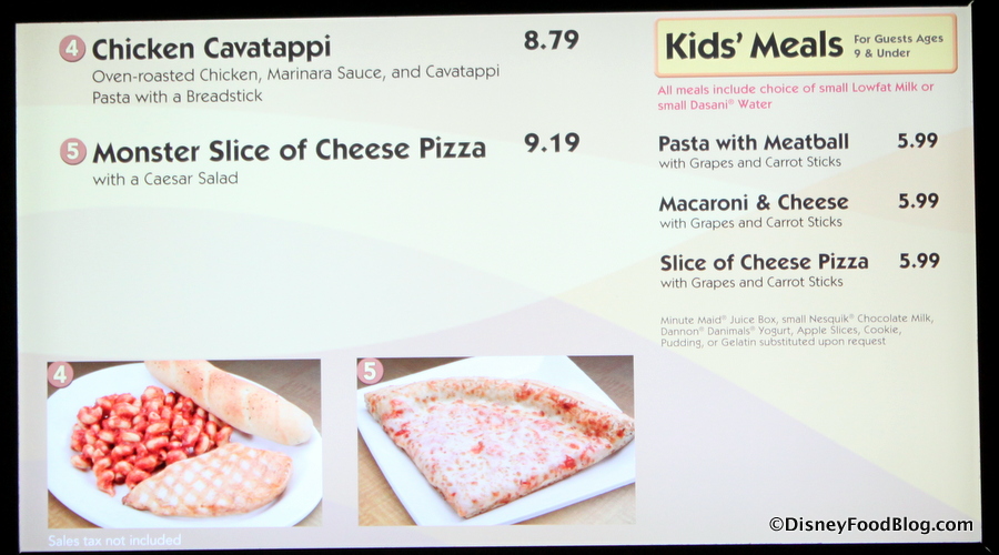 As with other Food Court-type settings at Walt Disney World, the “Create You Own” theme is big here. But you’ll find more options to customize here than just about anywhere else. As the sign says, it’s the perfect place to head when you’re feeling hungry AND creative!
