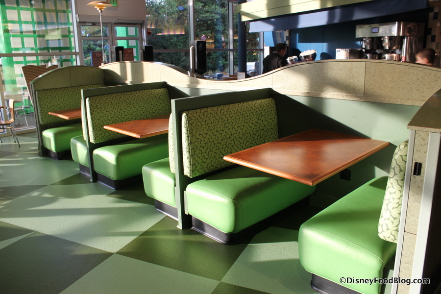 Still, if you do require a bit of a comfortable break, booth seating is padded and a little more cozy, since it’s walled (or windowed) off to one side.