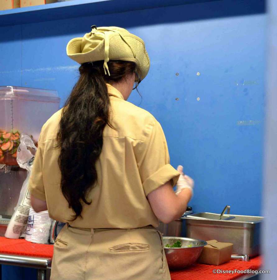 After placing our order, it was fun to see the salads freshly mixed by the Cast Member inside the kiosk.