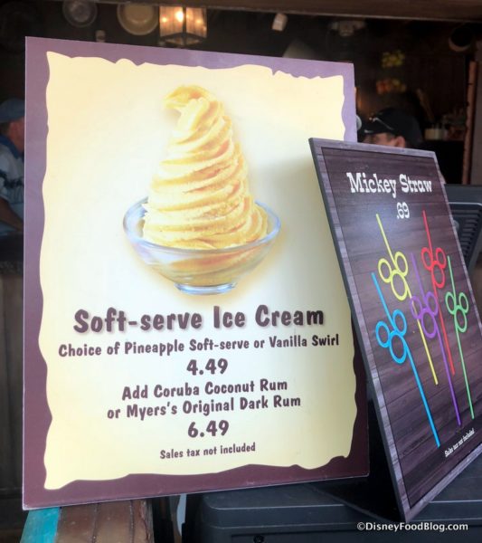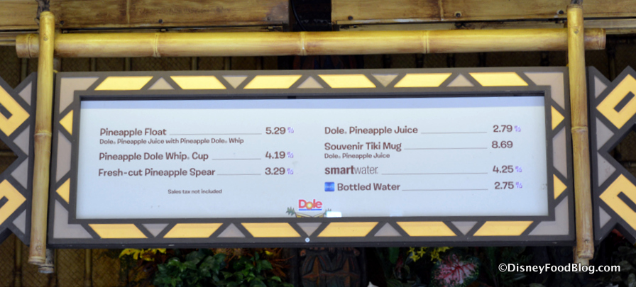 The menu is as simple as it gets: your options are simply Pineapple Dole Whip in a cup, or in Float form (served in a generous pour of Dole Pineapple Juice).