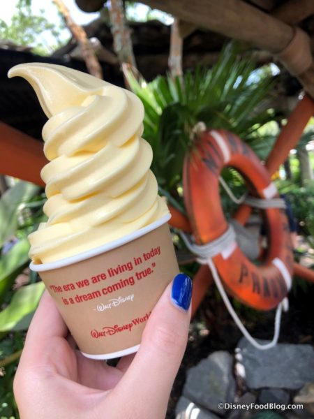 While not exactly WDW, but close, you can also get a dole whip at Disney’s Vero Beach Resort. I don’t recall if they did the swirl or not there… been a while! 🙂