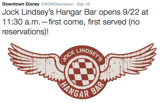 Doors open at 11:30 am on SEPTEMBER 22nd to Jock Lindsey’s Hangar Bar in Downtown Disney!