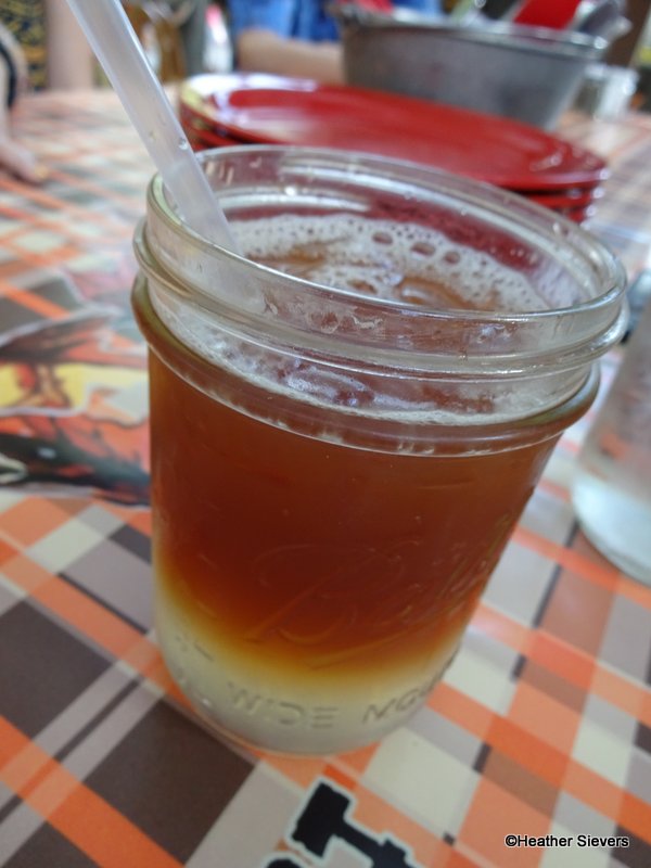 Before your food starts coming out, drink orders are taken. Bottomless options include Coke, Diet Coke, Sprite, Orange Fanta, Lemonade, Root Beer and Iced Tea. I actually ordered an Arnold Palmer and the cast member was happy to mix a lemonade and iced tea for me! All drinks are served up in Mason Jars.