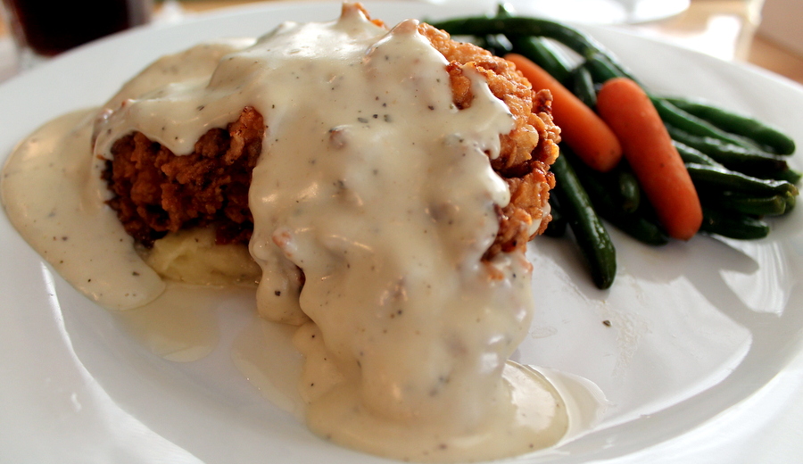 But the buttermilk gravy was THE STAR of the show. Oh, my goodness. Both of us agreed that we could have had a soup bowl full of it. It was perfect over the chicken and mashed potatoes. And there was plenty of it. No skimping on gravy here! By the way, those mashed potatoes were creamy and would have been delicious on their own.