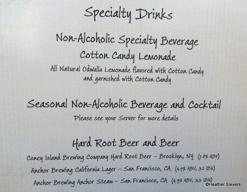 Of course we had to try the Cotton Candy Lemonade. A gorgeous blue color, the lemonade comes with a fun pink straw topped with a large clump of cotton candy! It’s such a photogenic beverage. I did enjoy it, but no way would I be able to drink an entire glass. Very sweet, but also a hint of sour. Definitely worth a few sips. I say get one to share! The cotton candy on top is a very fun touch.