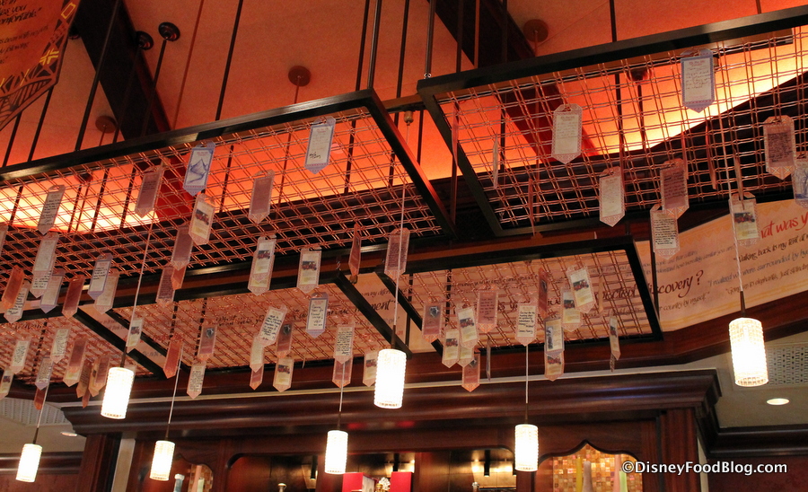 This is also where you’ll learn how you can share YOUR story at Nomad Lounge. Guests can purchase a mini-banner for a dollar and record their own travel memories on it. The mini banners are then hung above the bar, meant to inspire future guests. (85% of the tag purchase goes towards the Disney Conservation Fund.)
