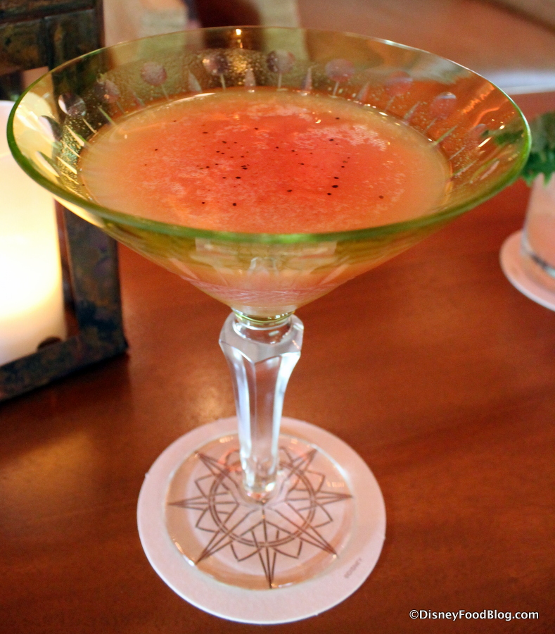 This drink was described to us as a “watermelon margarita,” and I gotta say, that pretty much nails it! But what was really impressive was how pure and fresh the watermelon flavor was. You could almost taste the seeds, it was that authentic. A really fun — not to mention beautiful — beverage.