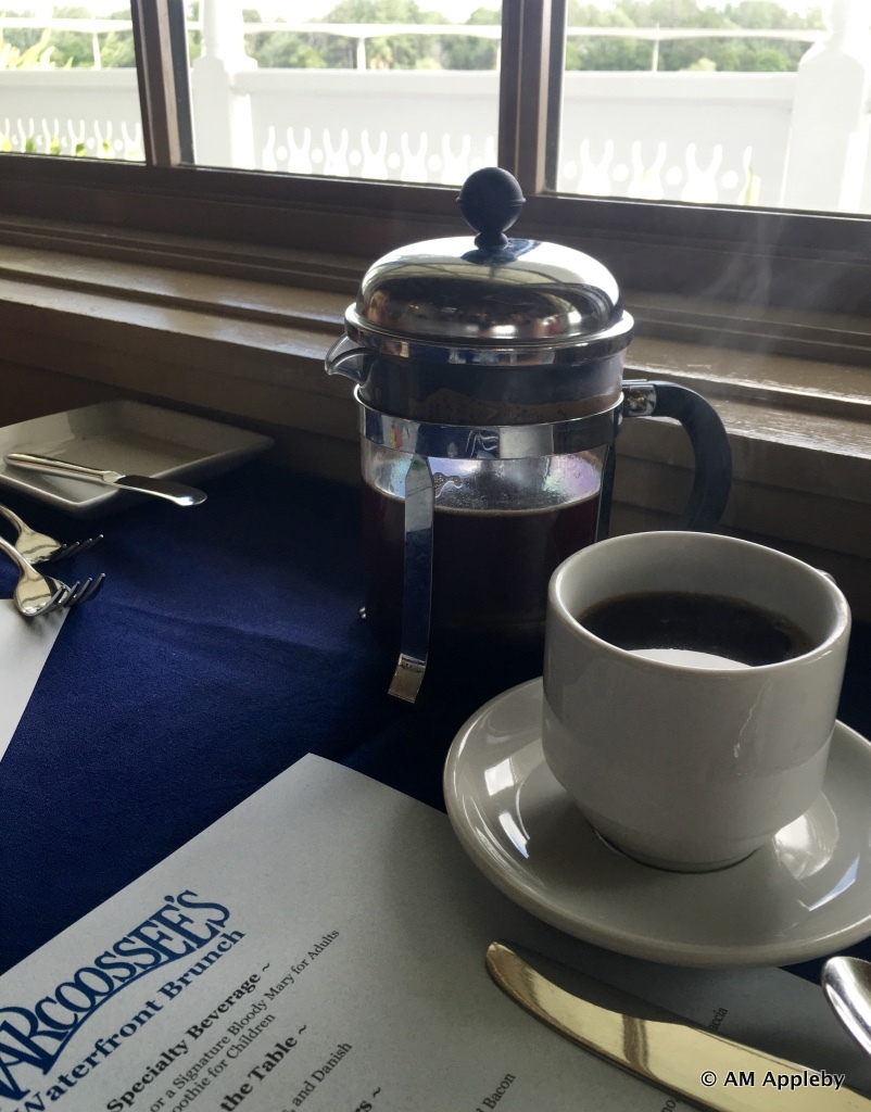 I’ve enjoyed dinner twice at this location and was excited to try brunch. We arrived at the Grand Floridian twenty minutes before our reservation time and walked through the magnificent lobby and out the back doors to the restaurant.