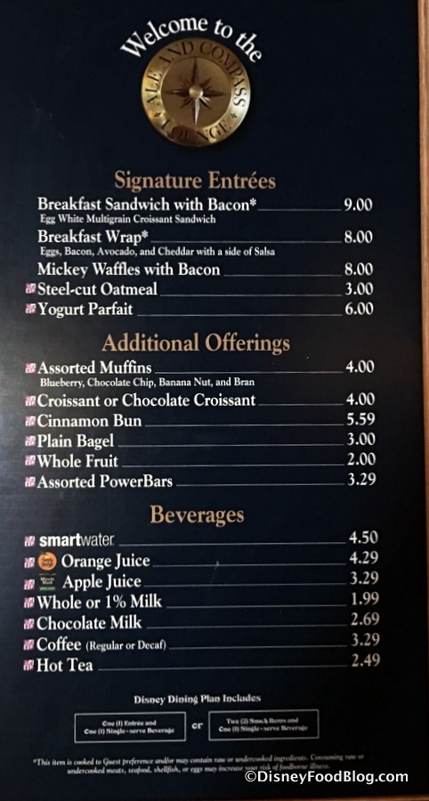 And next door at the Yacht Club, the breakfast options at Ale & Compass Lounge have been amped up with the inclusion of a Breakfast Sandwich and Wrap, along with Mickey Waffles.