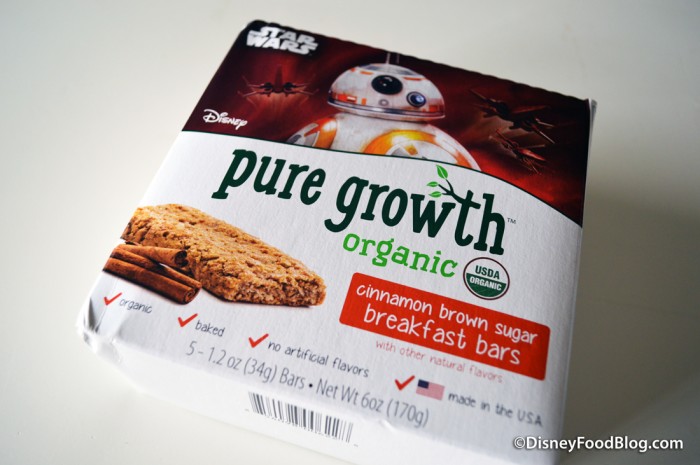 One of my favorite ways to save time and money at Disney is by bringing breakfast items and eating them on the way to the parks, and the BB-8 packaging on these cinnamon brown sugar bars makes it even more appealing!