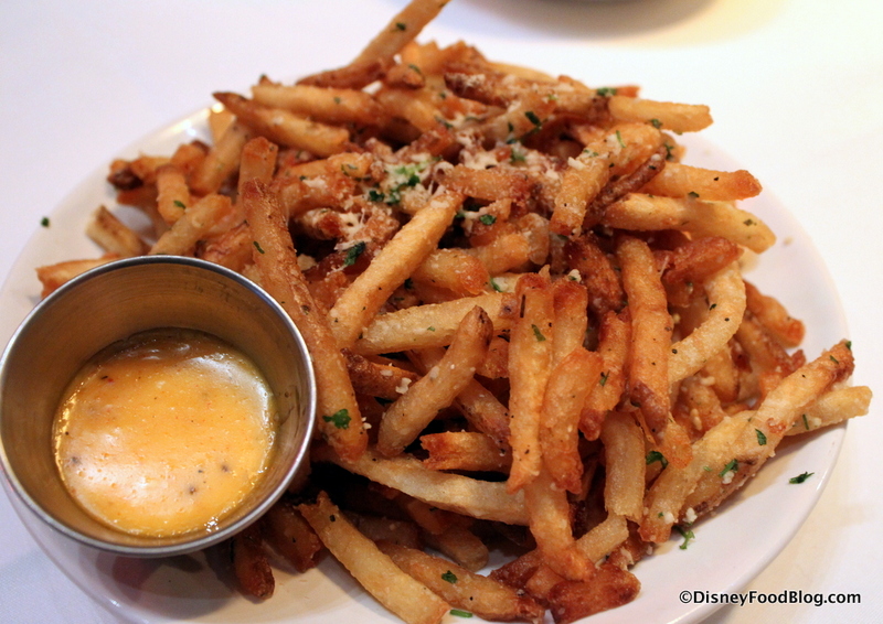 My cousin and I had a great, fairly inexpensive lunch here when we visited back in June. She got the Wedge Salad which was massive and delicious, and I got the Filet Sliders. The sliders were fantastic- easily the most tender meat I’ve ever gotten on any kind of steak sandwich. And for $14! It’s hard to find a quick-service burger in the parks for less than that anymore. The portion was good too. It came with regular fries, although I upgraded to the truffle version which I enjoyed thoroughly. We didn’t even have room for dessert.