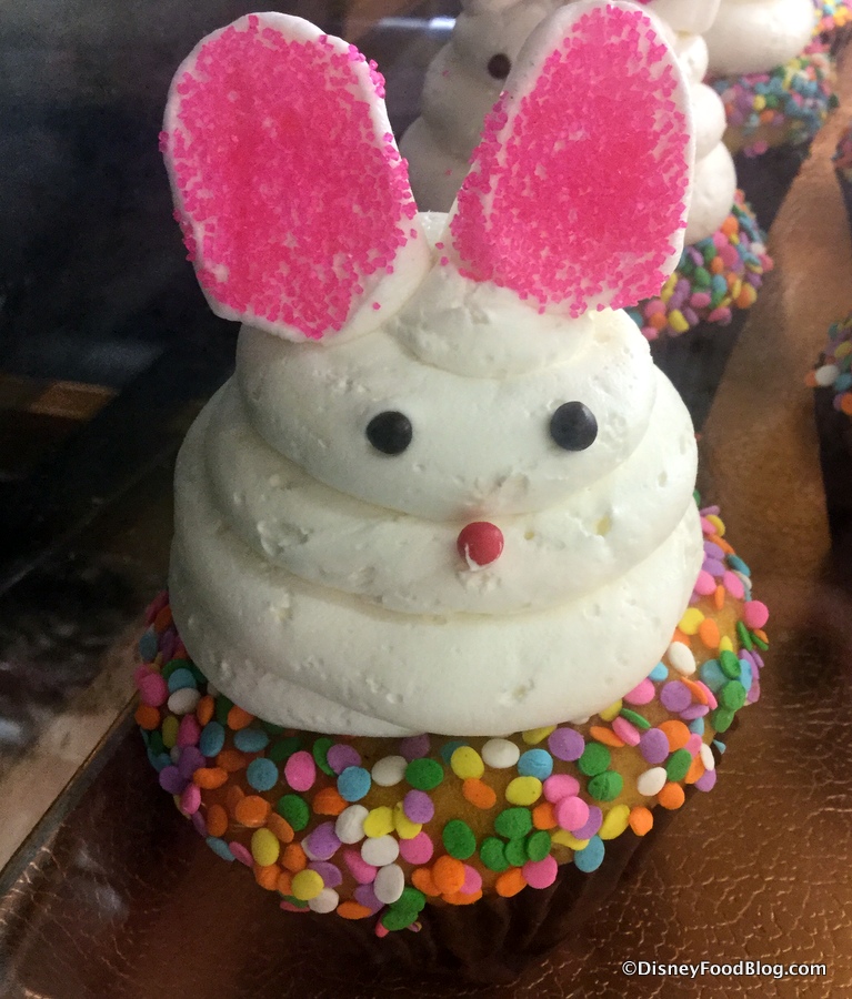 The Contempo Cafe at Contemporary Resort will feature a Carrot Cake Cupcake (with white chocolate filling) and — on Easter Sunday — a Coconut Cupcake filled with chocolate cream will be topped with banana buttercream, bits of white chocolate, and jelly beans. Meanwhile, in Epcot, Fountain View is where you’ll spot the feet and tail of the Easter Bunny decorating a chocolate cupcake with marshmallow filling.